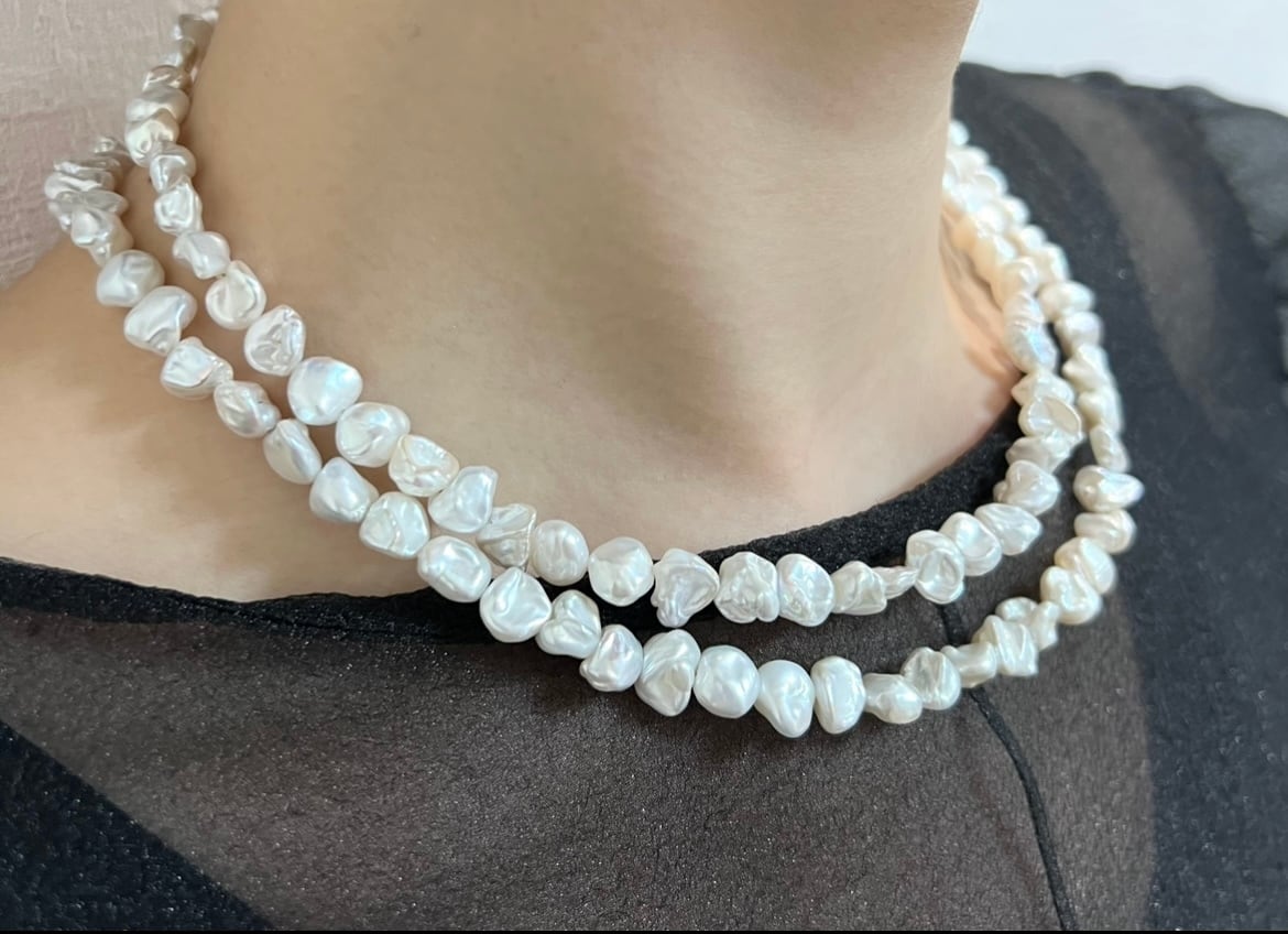 パールの煌めきと華奢なシルエットで合わせるものを選ばないネックレス。 カジュアルからきれいめ、パーティまで幅広いシーンで活躍できるアイテム。 シンプルなスタイルに一本プラスしたり、華奢なネックレスとレイヤードするのもおすすめです。 【 素材 】 淡水パールバロックネックレス 【サイズ 】 7ー8㎜ 約40cm シルバークラスプ ※こちらの商品はオーダー商品となります。 お届け予定:10日〜2週間 ・真珠は天然素材のため色合いや形等は一点一点異なります。 ・商品により色・サイズなどが写真や表記とは多少異なることがあります。 ・天然素材を使用しておりますため商品の色、模様、形の不揃いなどの理由による返品・交換は受け付けておりません。ご了承ください。 ※商品のカラーは閲覧環境によって異なりますのでご注意下さい